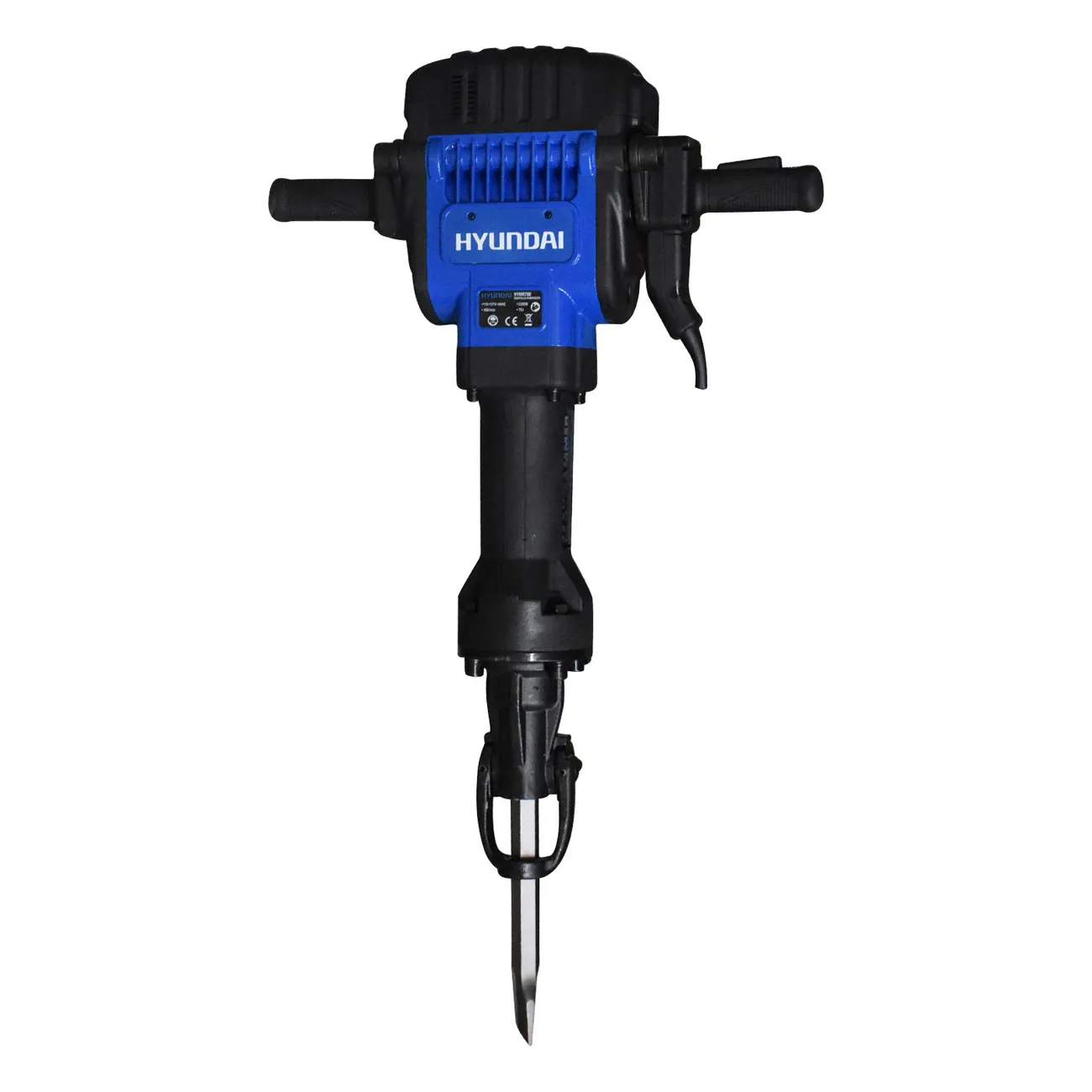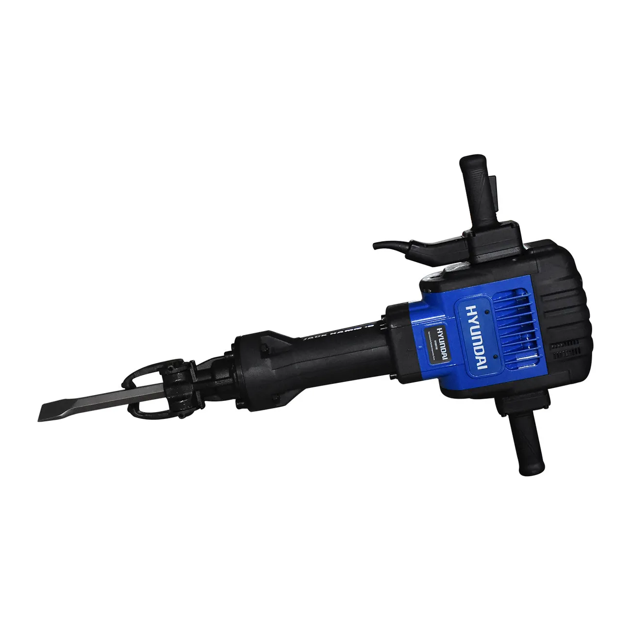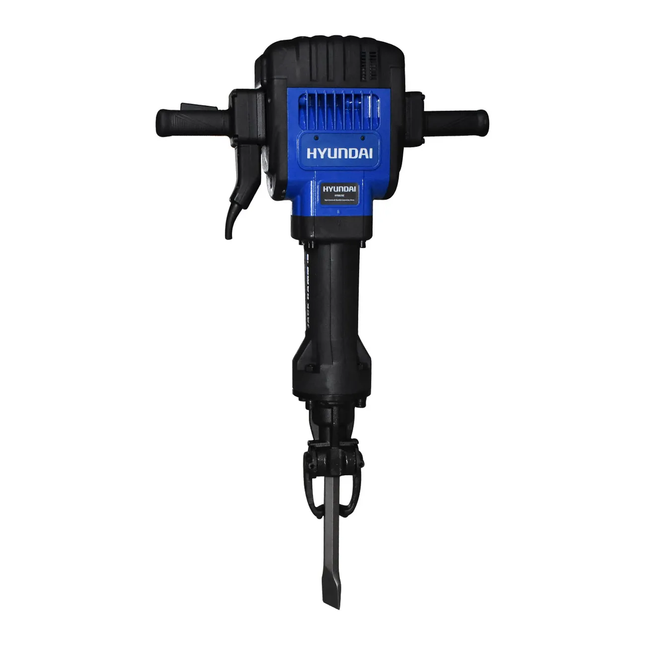 Martillo Demoledor Profesional marca HYUNDAI con potencia de 2200 W. Dotado de un gran diseño ergonómico para demoliciones de pisos, banquetas y perforaciones en distintas aplicaciones de industria y de construcción. Incluye un cincel plano y un cincel de punta